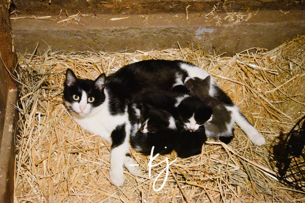 Over the past couple of weeks, mama cat was showing all the signs that she was definitely carrying a litter, and suddenly her tummy shrunk and I knew the kittens had made their way out into the world and likely to a warm bed in the barn surrounded by hay.