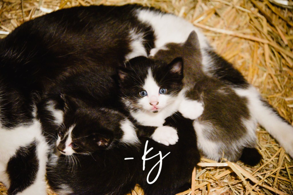 Surely they were tucked away in the barn loft full of hay. Securely hidden behind some bales keeping them safe from outsiders. We tiptoed around the loft quietly listening for tiny meows. After maxing out a three-year-old’s ability for silence we gave up!